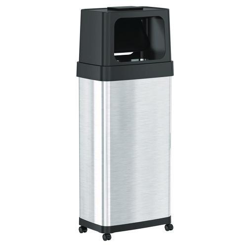Dual Push Door Trash Can, 24 gal, Stainless Steel, Silver/Black