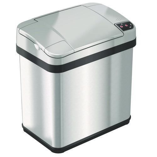 Rectangular Sensor Trash Can, 2.5 gal, Plastic, Silver