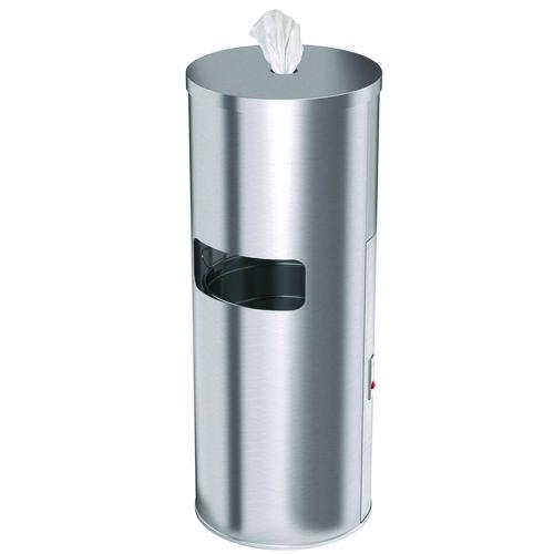 Side-Entry Trash Can with Gym Wipe Dispenser, 9 gal, Stainless Steel, Silver