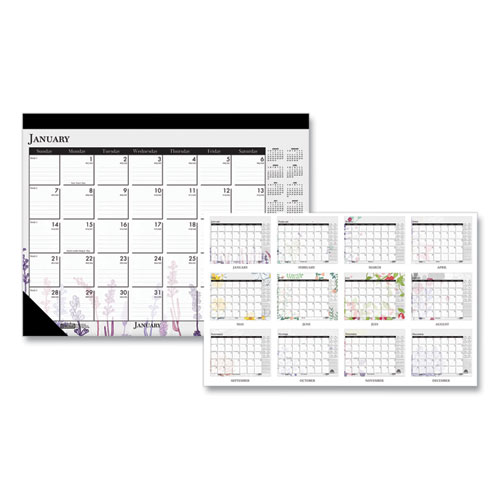 Recycled Desk Pad Calendar, Wild Flowers Artwork, 22 x 17, White Sheets, Black Binding/Corners,12-Month (Jan-Dec): 2024