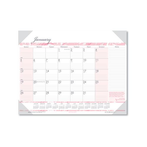 Recycled Monthly Desk Pad Calendar, Breast Cancer Awareness Artwork, 22 x 17, Black Binding/Corners,12-Month (Jan-Dec): 2024