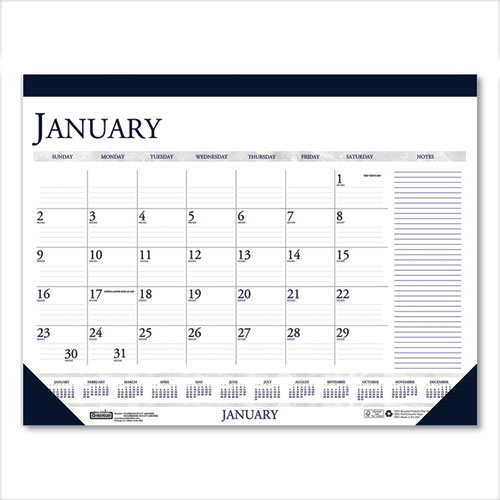 Recycled Two-Color Monthly Desk Pad Calendar with Notes Section, 18.5 x 13, Blue Binding/Corners, 12-Month (Jan-Dec): 2024