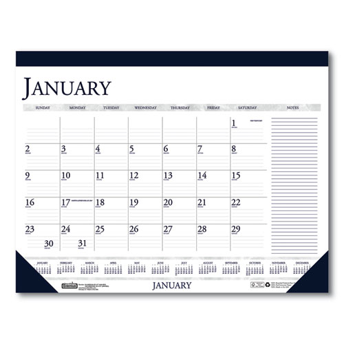 Recycled Two-Color Monthly Desk Pad Calendar with Notes Section, 22 x 17, Blue Binding/Corners, 12-Month (Jan-Dec): 2024