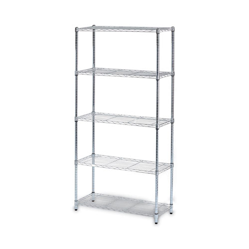 Residential Wire Shelving, Five-Shelf, 36w X 14d X 72h, Silver