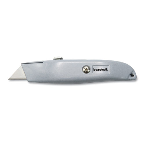 Retractable Metal Utility Knife, Retractable, 6" Die-Cast Handle, Gray