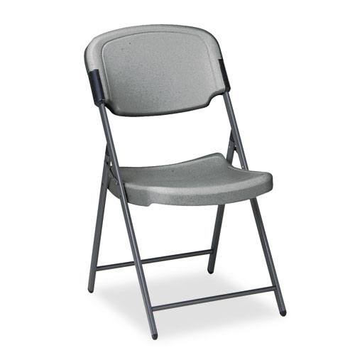 Rough n Ready Commercial Folding Chair, Supports Up to 350 lb, 15.25" Seat Height, Charcoal Seat, Charcoal Back, Silver Base