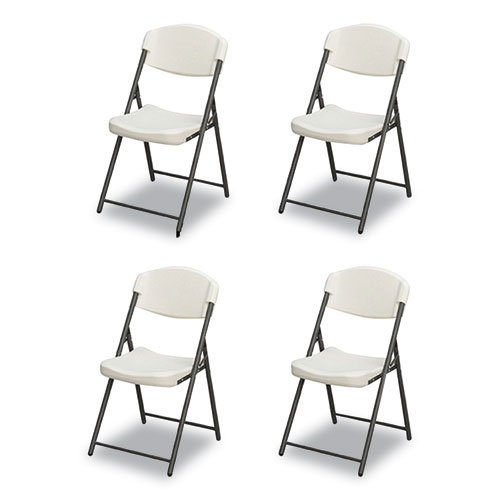 Rough n Ready Commercial Folding Chair, Supports Up to 350lb, 18" Seat Height, Platinum Granite Seat/Back, Black Base, 4/Pack