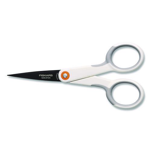 SoftGrip Nonstick Scissors, 5" Long, Straight White/Gray Handle