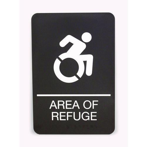 ADA Sign, Area of Refuge, 6 x 9, Black Face, White Graphics