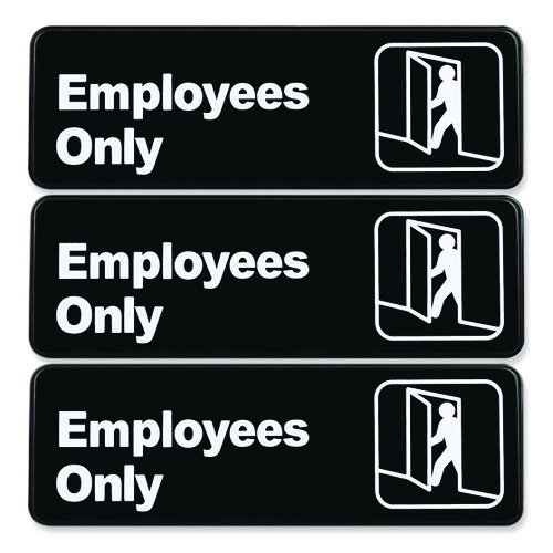 Employees Only Indoor/Outdoor Wall Sign, 9" x 3", Black Face, White Graphics, 3/Pack