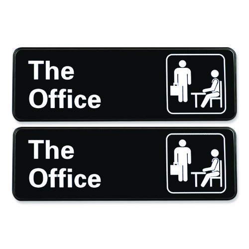 The Office Indoor/Outdoor Wall Sign, 9" x 3", Black Face, White Graphics, 2/Pack