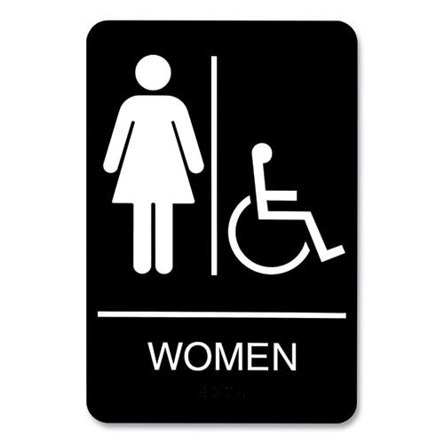 Ada Sign, Women/wheelchair Accessible Tactile Symbol, Plastic, 6 X 9, Black/white