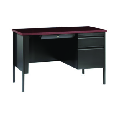 Single Pedestal Steel Desk, 45" x 24" x 29.5", Mahogany/Charcoal, Charcoal Legs