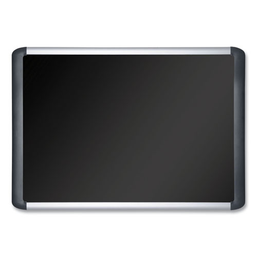 soft-touch bulletin board, 72 x 48, black fabric surface, aluminum/black aluminum frame