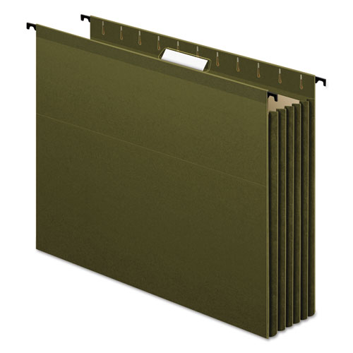 Revolutionary SureHook® features built-in tension springs. Stronger, sturdier rods and hooks bend less, and the folders slide with ease. Full-height gussets will not catch on drawer rails. 3 1/2" expansion. Polylaminate reinforced top and bottom edges provide superior durability.