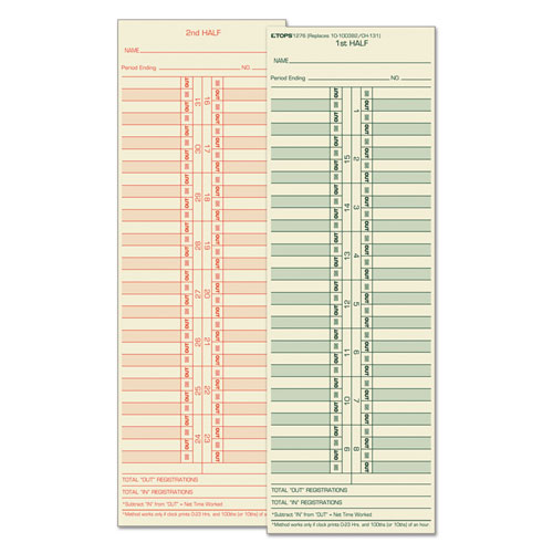 Time Clock Cards, Replacement For 10-100382/1950-9631, Two Sides, 3.5 X 10.5, 500/box