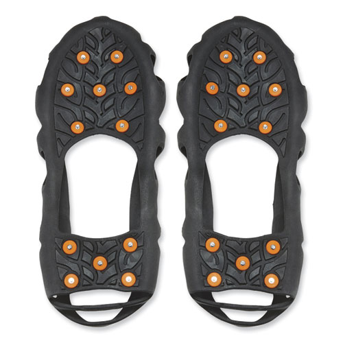 The TREX 6304 Step-In Ice Cleats are lightweight ice grips for boots and shoes that provide tenacious traction and extra stability on ice and snow. Stretchable one-piece design offers grip to prevent slip and fall injuries on the ice. Contoured step-in 3D design easily wraps around boots and shoes for a superior fit. These ice grippers feature 12 rugged carbon steel cleats on the ball and heel of foot for grip on slippery terrain. Available in multiple sizes and will fit over any style of boot or shoe for traction and stability during winter work or other winter outdoor activities. Tested to be flexible in temperatures down to -40°F (-40°C), the contoured 3D design allows you to step into these ice traction cleats for fast and easy on/off. TREX Ice Traction should fit snugly on your boot or shoe. Stretchy, one-piece design means no tightening or adjustments needed. Use your shoe/boot size to determine the approximate size.