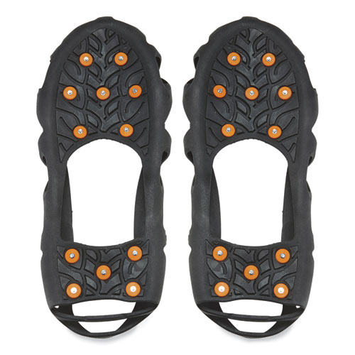The TREX 6304 Step-In Ice Cleats are lightweight ice grips for boots and shoes that provide tenacious traction and extra stability on ice and snow. Stretchable one-piece design offers grip to prevent slip and fall injuries on the ice. Contoured step-in 3D design easily wraps around boots and shoes for a superior fit. These ice grippers feature 12 rugged carbon steel cleats on the ball and heel of foot for grip on slippery terrain. Available in multiple sizes and will fit over any style of boot or shoe for traction and stability during winter work or other winter outdoor activities. Tested to be flexible in temperatures down to -40°F (-40°C), the contoured 3D design allows you to step into these ice traction cleats for fast and easy on/off. TREX Ice Traction should fit snugly on your boot or shoe. Stretchy, one-piece design means no tightening or adjustments needed. Use your shoe/boot size to determine the approximate size.