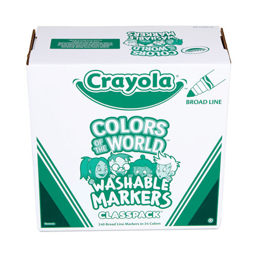 Rich, wonderful color with the added benefit of simple washability. Washable from skin, clothing and painted walls, the worlds most washable marker. ColorMax™ colors—Crayola's brightest, truest colors yet! Water-based ink. These large marker packs contain enough for the whole classroom.