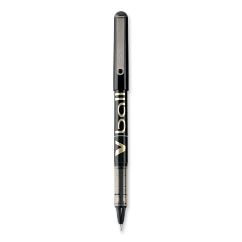VBall Liquid Ink Roller Ball Pen, Stick, Fine 0.7 mm, Black Ink, Black/Clear Barrel, Dozen