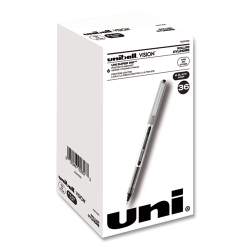 Make your everyday writing easy with the effortless and dependable performance of Vision Rollerball Pens from uni-ball featuring strong, long lasting tips. Capped roller pens deliver an even liquid ink lay-down for reliably smooth, vivid lines and a rich color for improved clarity and readability. Great for all writing tasks from taking notes to record keeping with archival quality, acid free roller ink. Innovative uni Super Ink technology forms an indestructible bond with the paper to minimize the risk of check washing or document fraud, while also protecting from water and fading. The exclusive Uni-Flow Ink System ensures a consistent, delightfully fluid writing experience, and a translucent window ensures that you don't run out of ink unexpectedly. Enjoy beautiful clean lines and give all of your ideas a burst of brilliant color with this classic style rollerball pen.