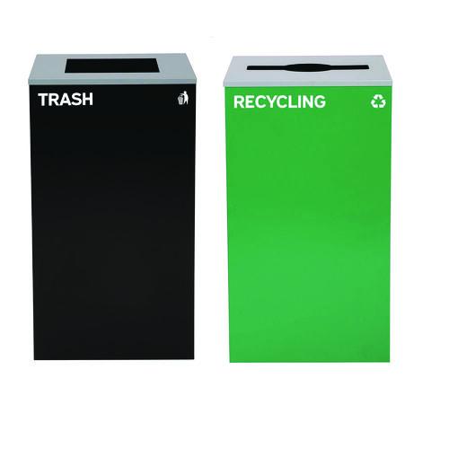 29 Gallon Trash/Recycling Cans, Steel, Green Recycling Can with Mixed Lid, Black Trash Can with Square Lid