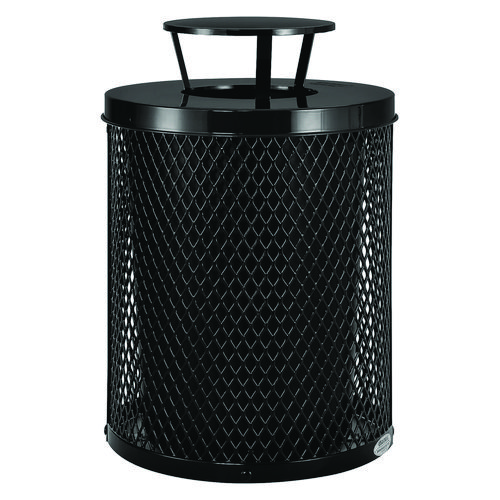 Outdoor Diamond Steel Trash Can, Rain Bonnet Lid, 36 gal, Black