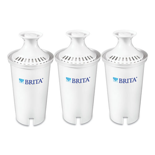 Keep tap water healthier and tasting better when you regularly change your Brita replacement filter. Made to fit all Brita pitchers and dispensers, this replacement filter reduces copper, mercury and cadmium impurities that can adversely affect your health over time, while cutting chlorine taste and odor to deliver great tasting water. Designed to leave no black flecks in your water and with no pre-soak required, the Brita filters are quick and easy to use. Change your Brita filters every 40 gallons or approximately two months for best performance. Ideal for use in restaurants, cafeterias and other commercial facilities. Start drinking healthier, great tasting water with Brita today.