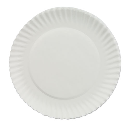 Affordable white uncoated paper plates. Lightweight design allows plates to be used for multiple purposes.
