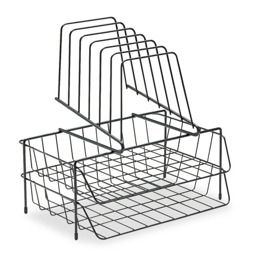 Fellowes wire double tray with step file helps to organize and prioritize. Space-saving design incorporates two side load letter-size trays under a step file sorter. Sturdy, sleek wire construction. Rubber feet. 100% recyclable. Perfect for your office or home office, school, or anywhere you need to organize your important papers and documents. Look for other coordinating wire desktop accessories from Fellowes.