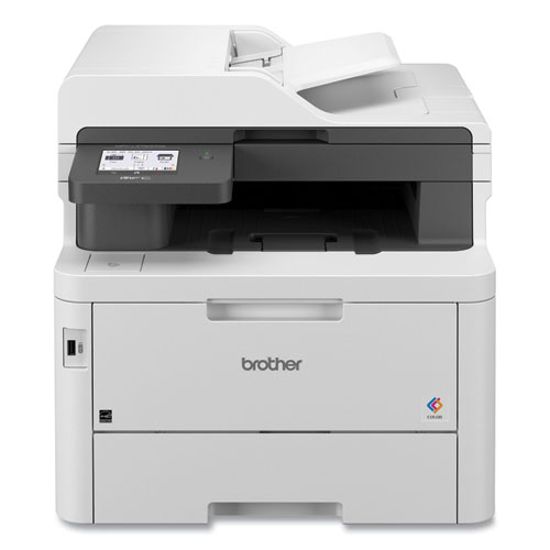The Brother MFC-L3780CDW digital color all-in-one printer with copy, scan and fax functionalities is engineered to offer small business leaders an extraordinary level of efficiency with astounding print speeds and plenty of productivity-propelling features. Save time with print speeds up to 31 pages per minute and scan speeds up to 29/22 ipm (black/color). Versatile paper handling options include a 50-sheet auto document paper feeder for multi-page copy, scan and fax and single pass duplex copying and scanning. A 250-sheet capacity paper tray adjusts for letter or legal sizes and minimizes the frequency of paper refills while the 30-sheet capacity paper tray is ideal for envelopes, letterhead and alternative media. Tackle high-volume printing with the optional 250-sheet lower tray that will increase total paper tray capacity to 500 sheets. Assign up to 48 timesaving shortcuts to popular workflows through the intuitive 3.5" touchscreen. This easy-to-use feature also enables you to directly print-from and scan-to a variety of Cloud based apps, manage toner levels and so much more. Connect to virtually any device with the built-in dual band wireless, Wi-Fi Direct®, Gigabit Ethernet or connect locally to a single computer via USB interface. Advanced security features include an integrated NFC card reader for badge authentication to help safeguard your information while printing. This all-in-one powerhouse is a first-class addition to any small, do-it-all workspace.