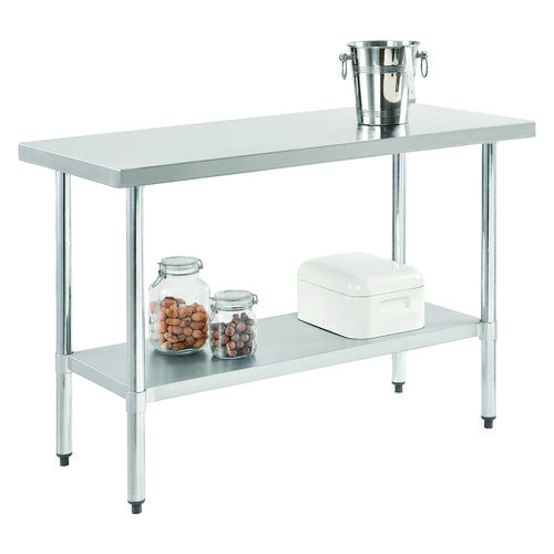 Work Table with Undershelf, Rectangular, 48 x 24 x 35, Silver Top, Silver Base/Legs