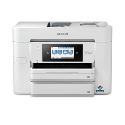 Ready to streamline workflow and increase efficiency? Designed for reliability and reduced downtime, the WorkForce Pro WF-C4810 is right at home in fast-paced, heavy-workload environments. It has the lowest power consumption in its class thanks to state-of-the-art PrecisionCore Heat-Free Technology™ and provides unwavering speed and unmistakably impressive high-volume printing at an astounding 25 black/12 color ISO ppm. A complete duplex solution, this printer keeps things moving with auto two-sided printing and built-in copy, scan and fax, plus a 50-sheet Auto Document Feeder to quickly and conveniently accomplish a variety of tasks. With vivid DURABrite® Ultra inks delivering professional-quality prints, an intuitive, 4.3" color touchscreen, a large, 500-sheet paper capacity and simple, secure, wireless connectivity, it's easy to see why the WorkForce Pro WF-C4810 means business.