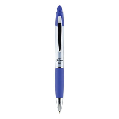 Z-Grip MAX Ballpoint Pen, Retractable, Medium 1 mm, Blue Ink, Silver/Blue Barrel, 12/Pack